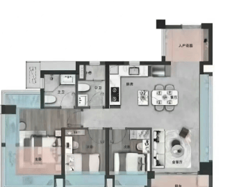 最让我印象深刻的,还是项目的产品力,尤其是100%的超高使用率。在广州,超100%实用率的产品已然成为新房标配,但真正能将空间利用做到极致,同时兼顾居住舒适度的项目并不多。中旅璞樾天序的户型设计,不仅实现了超高使用率,更注重空间的实用性与舒适性,270度飘窗、大阳台、四开间朝南、五开间朝南等设计,让每一个空间都能得到充分利用,同时保证了充足的采光与开阔的视野。加上高规格的精装交付标准,从中央空调到智能马桶,从厨房七件套到美妆冰箱,每一个细节都彰显着品质,让业主无需额外投入,就能享受到高品质的居住生活。