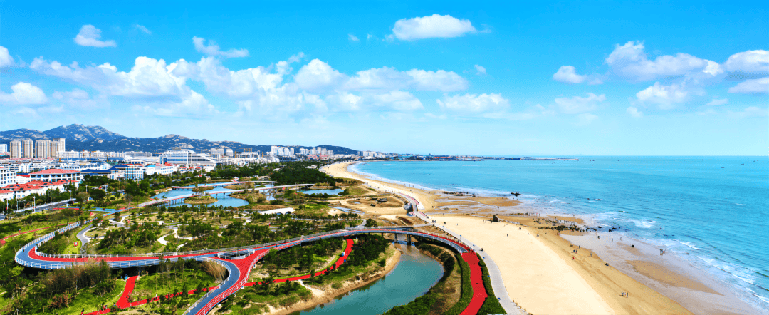威海荣成桑沟湾:位于黄海之滨,山东半岛最东端,是中国日出最早的海湾,也是山东半岛最开阔的生态海湾,海岸线平方公里。建设10公里带状滨海公园、占地3500亩的樱花湖体育公园和23万平方米的十里河文化公园,精细布局徒步骑行、露营游乐等濒海休闲场景,水脉与人文相映成趣。沿湾改造海水浴场2处,开放市民赶海、海钓场所6处,获批3个国家和省级海洋牧场示范区,年接待游客150多万人次。将生态优势转化为文旅产业优势,吸引国内外投资近千亿元,九龙城商业新城、樱花湖文体旅游等“水生态+”经济带迅速崛起,人海和谐,共享共融,宜居宜游,获评“山东人游山东”最受欢迎的县域旅游目的地。